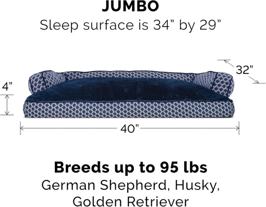 • Pillow Dog Bed for Large Dogs W/ Removable Bolsters & Washable Cover - Plush & Woven Decor Comfy Couch Sofa - Diamond Blue, Jumbo/Xl